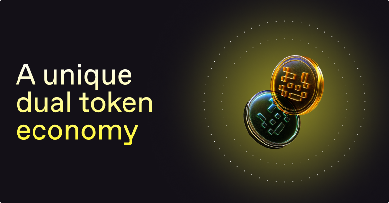 <figure><img src="https://1753895790-files.gitbook.io/~/files/v0/b/gitbook-x-prod.appspot.com/o/spaces%2F1tl4T1dGeal4tWIpt1Ja%2Fuploads%2F03tFJu3mSHYxPSi8URlC%2Fdualtoken.png?alt=media&#x26;token=f8cb47cd-3aca-4f03-ad65-70c1aa8f0781" alt=""><figcaption><p>A unique dual token economy</p></figcaption></figure>